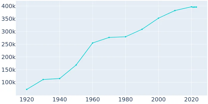 In terms of average every year the population increases by 1156. Population estimates July 1 2019 V2019 389938.